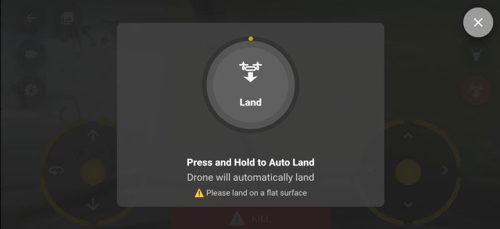 - The drone will automatically descend, reduce motor speed, and shut off the motors immediately upon contact with the ground.