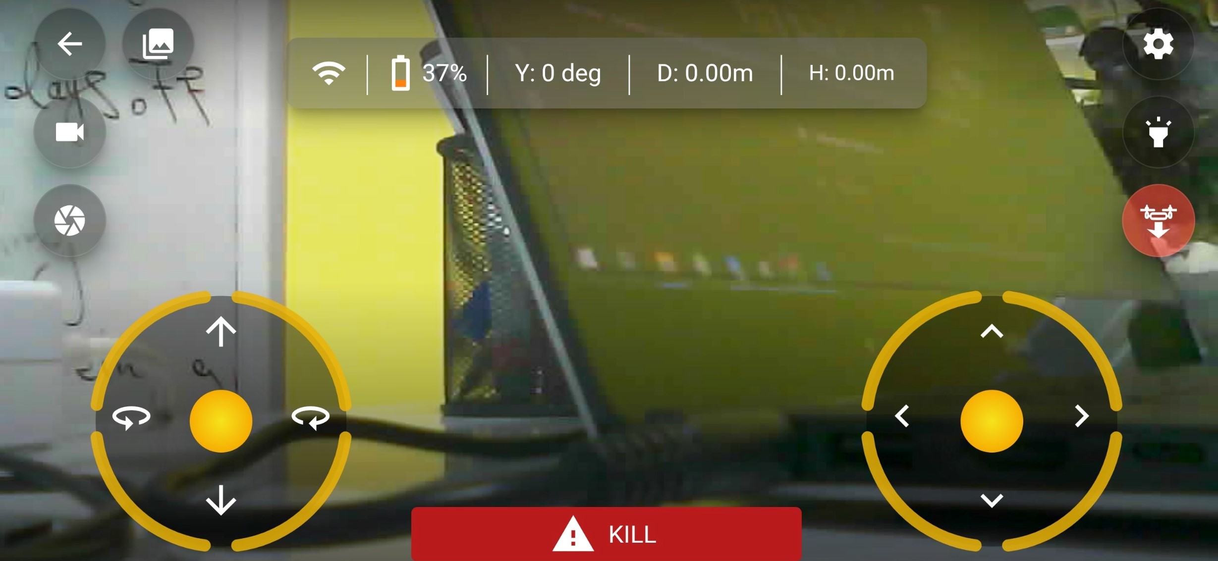 The flight interface provides your live video feed, virtual joysticks, and critical telemetry data.