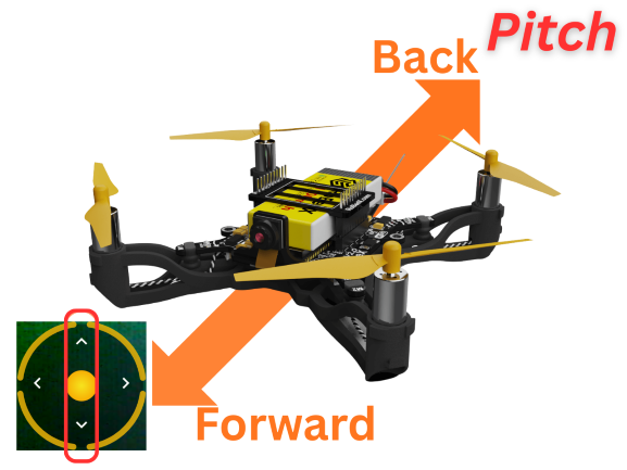 - Push Up: Tilts the nose down, causing the drone to move Forward.