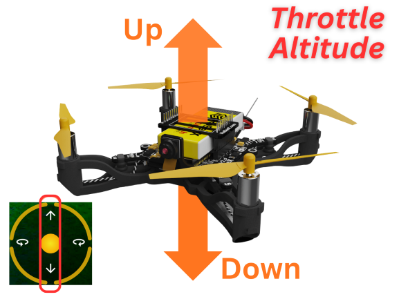Throttle controls the vertical movement of the drone. It adjusts the total power supplied to all four motors simultaneously.