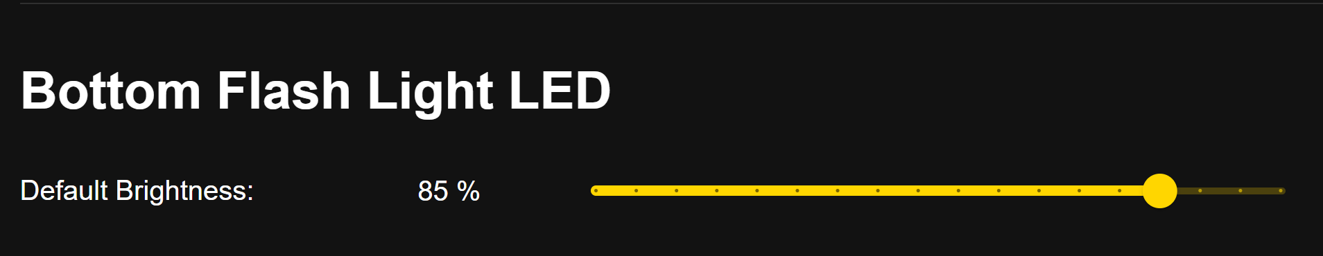 This setting allows you to control the intensity (brightness) of the Bottom Flash Light LED. This light is primarily used to aid in low-light landing and to improve ground visibility.