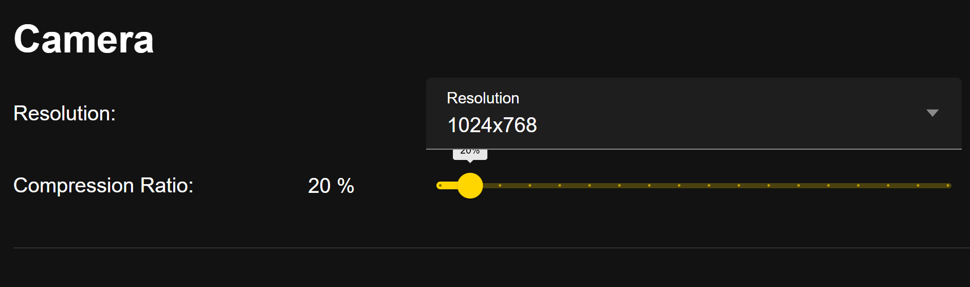 | Resolution | Defines the image and video quality in pixels. Lower resolution uses less bandwidth and storage, significantly improving the live stream rate (FPS) and lowering latency. | 320x240, 480x320, 640x480, 800x600, 1024x768 |