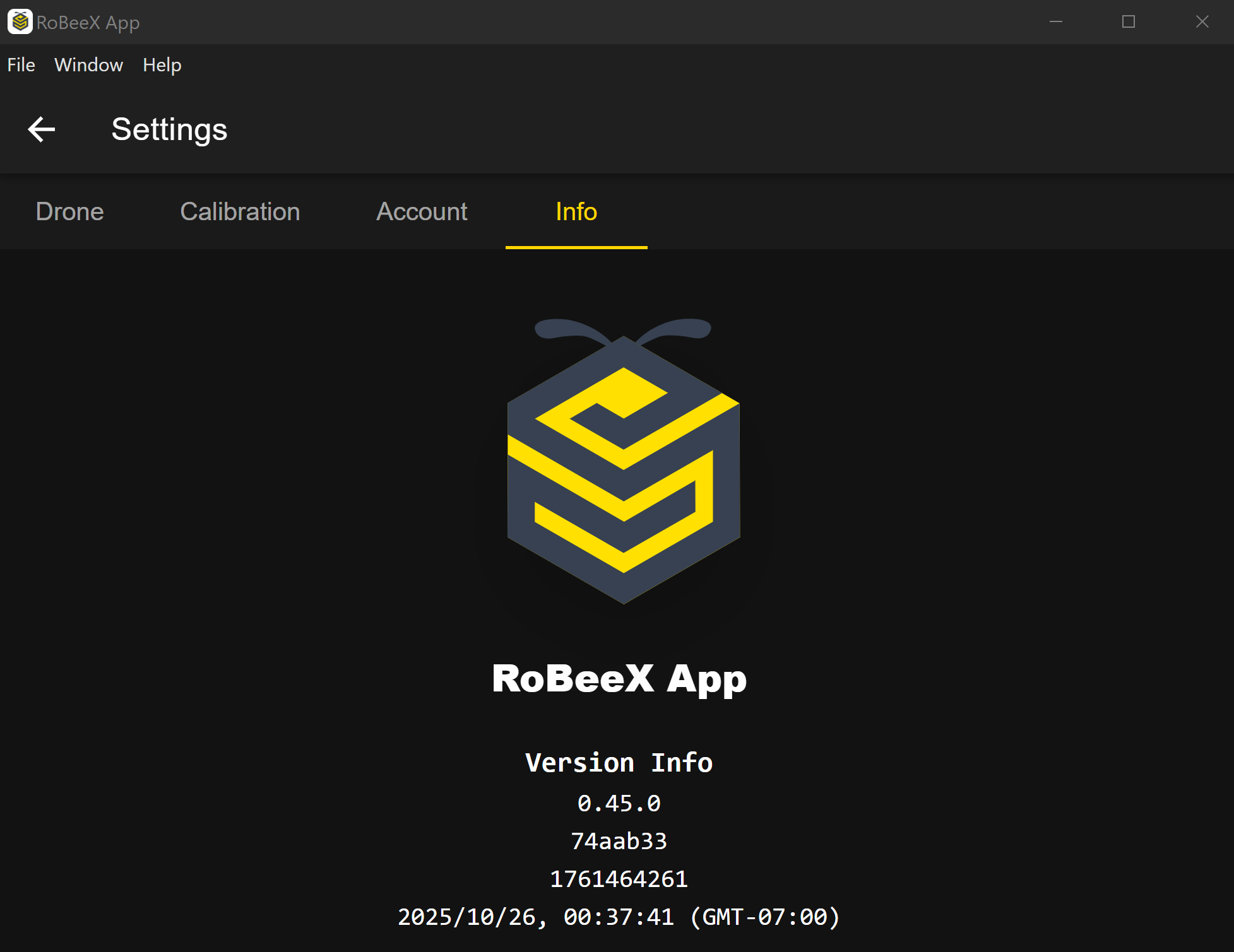 | Version Info | 0.45.0 | The primary, user-facing software version number of the installed RoBeeX App. |