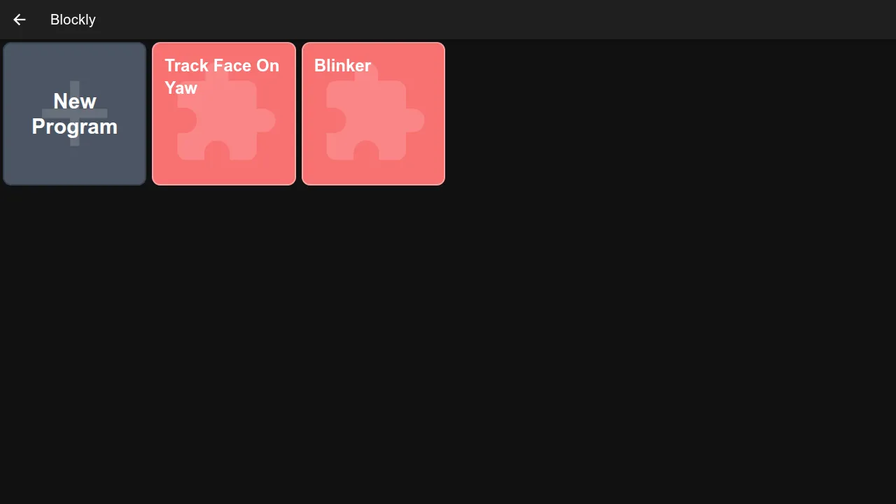 Here you can manage your blockly programs, make new programs or select your previous programs to modify them